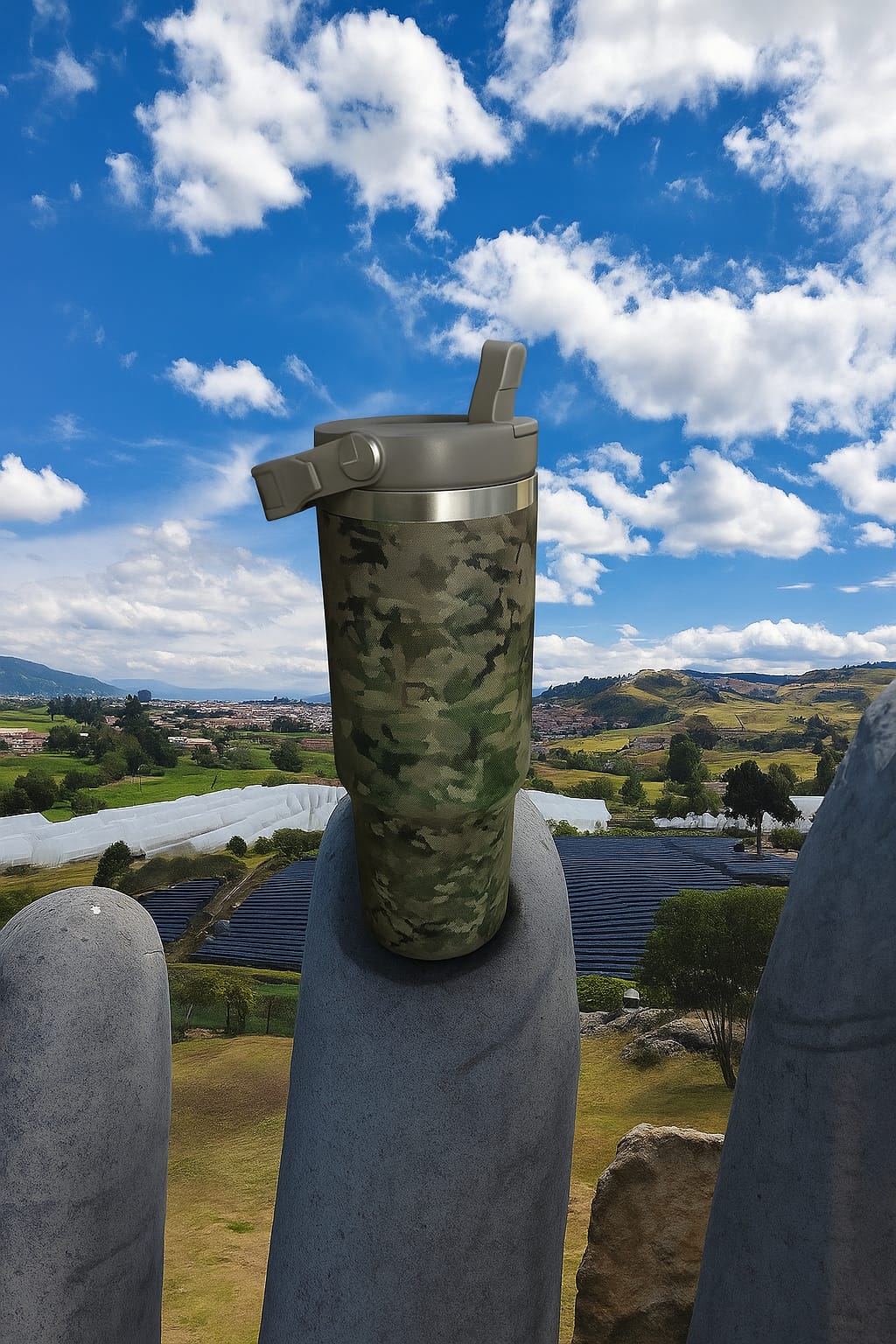 Botella táctica en acero inoxidable,mantiene las bebidas frías y calientes por 5horas,con manija de carguio,900MML,muy práctica para sus actividades diarias